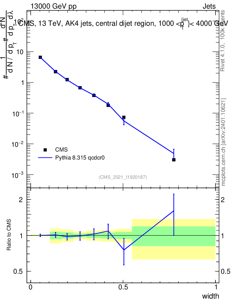 Lines: data, pythia8 8.315 qcdcr0 |