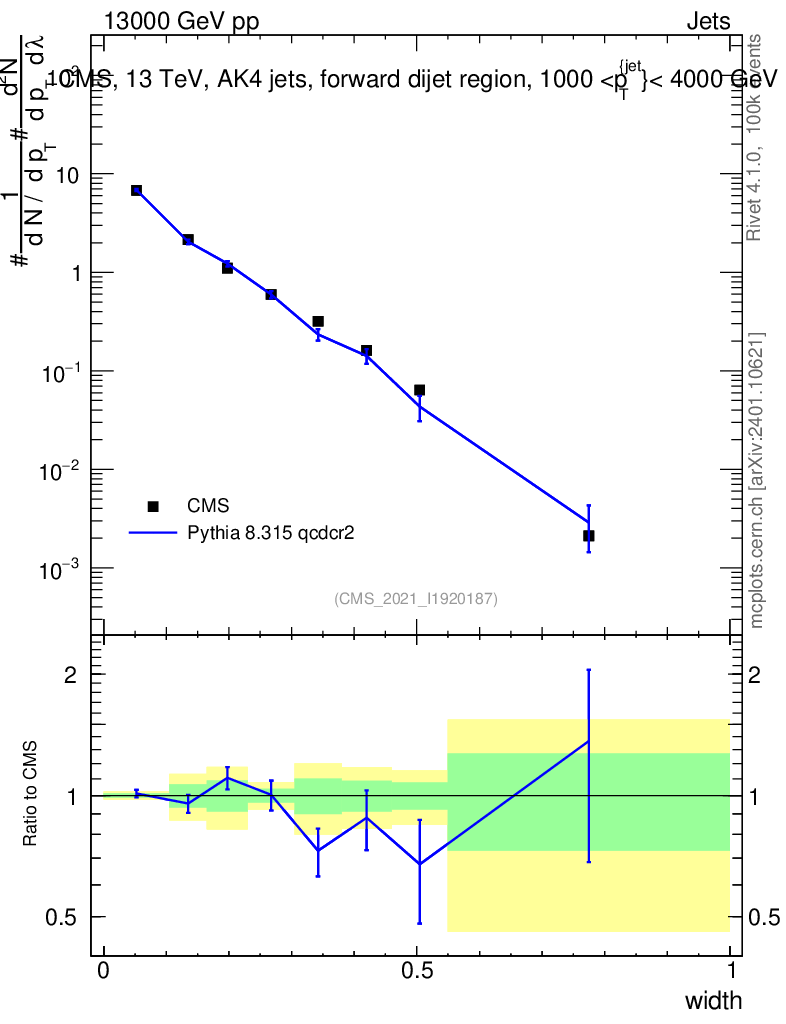 Lines: data, pythia8 8.315 qcdcr2 |