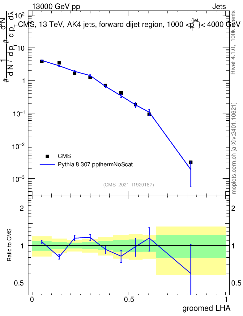 Lines: data, pythia8 8.307 ppthermNoScat |