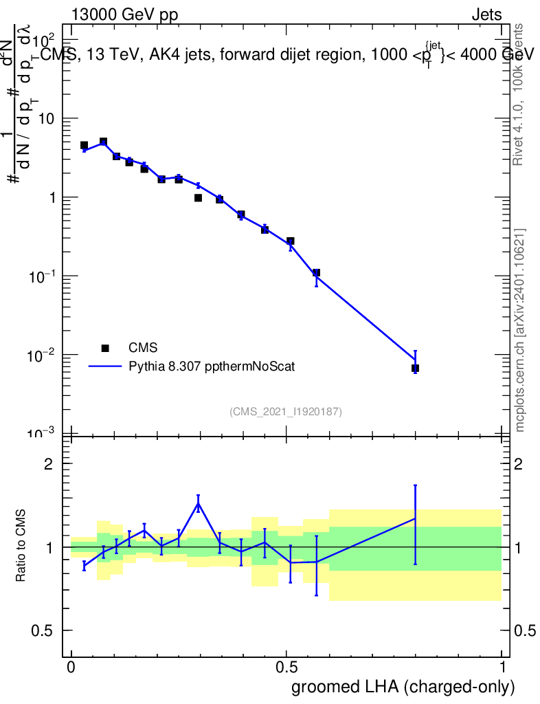 Lines: data, pythia8 8.307 ppthermNoScat |
