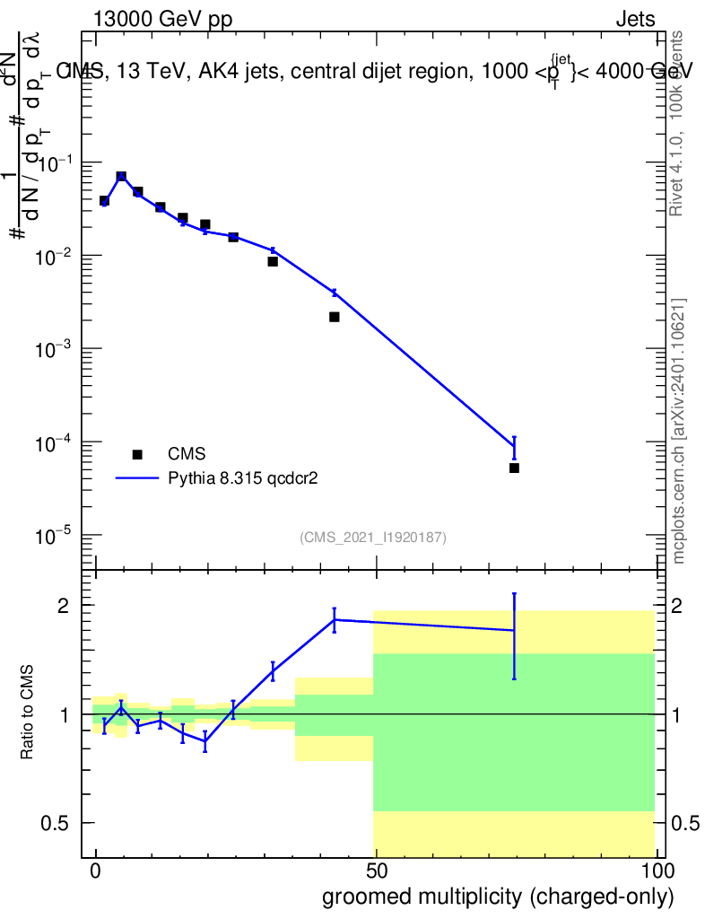 Lines: data, pythia8 8.315 qcdcr2 |