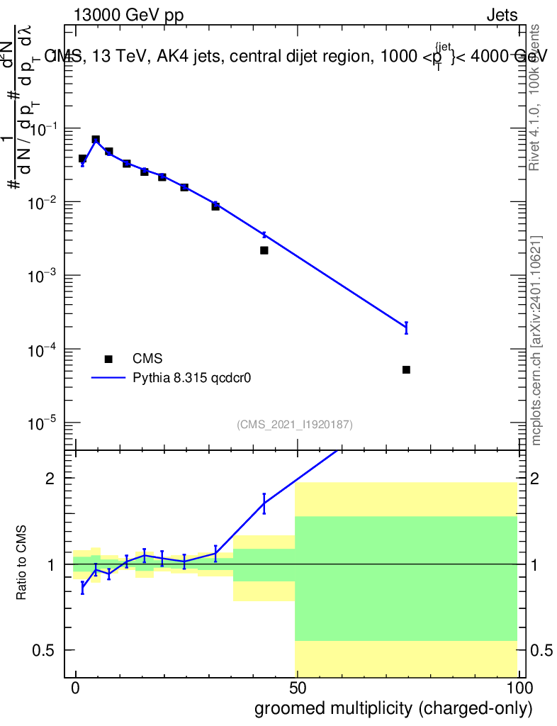 Lines: data, pythia8 8.315 qcdcr0 |