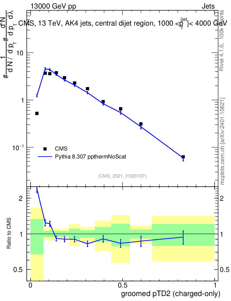 Lines: data, pythia8 8.307 ppthermNoScat |