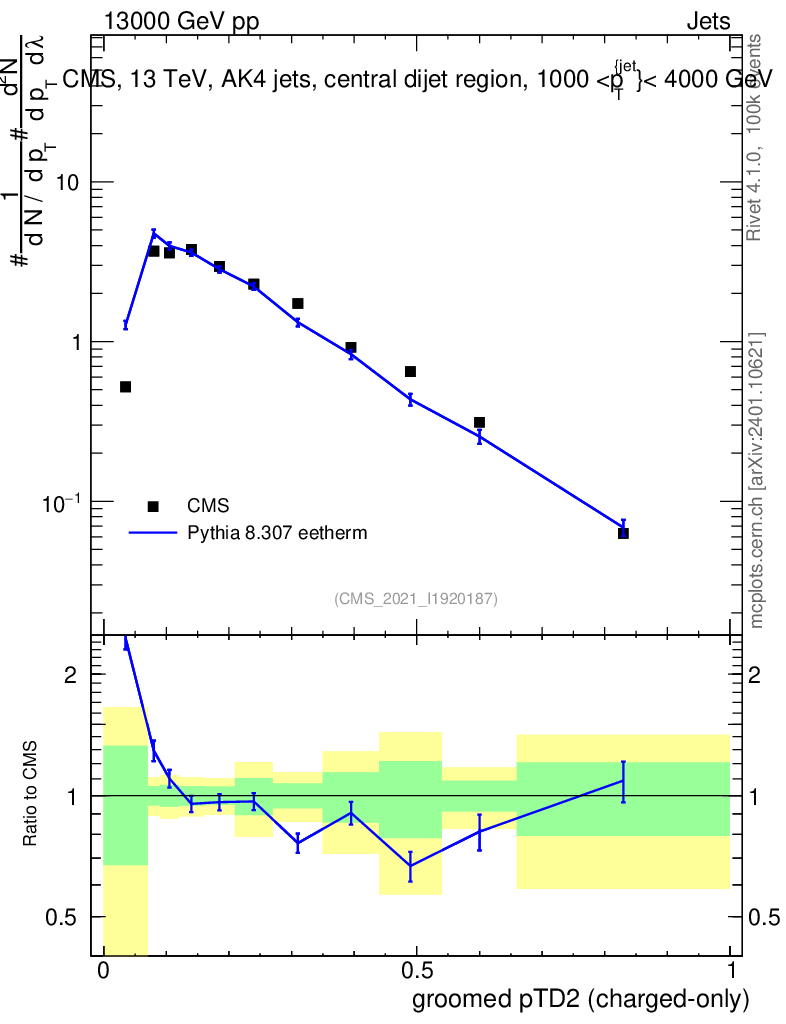 Lines: data, pythia8 8.307 eetherm |