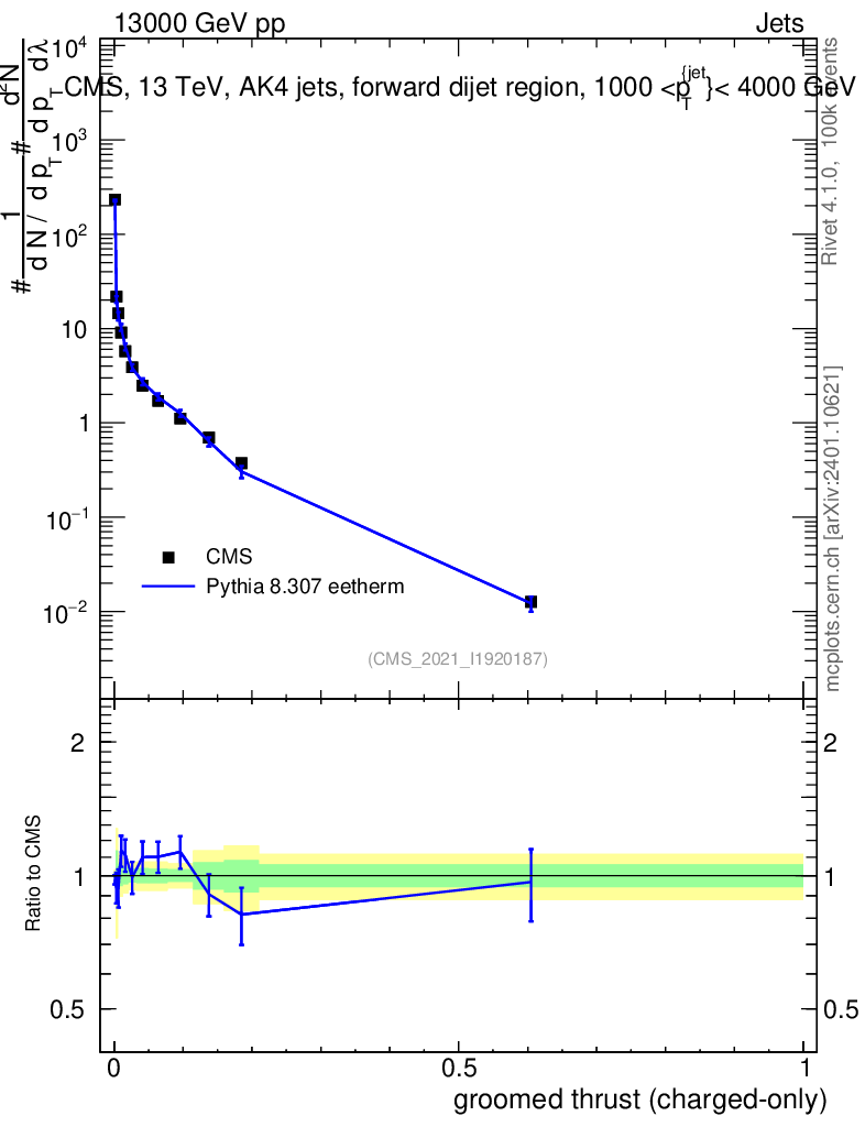 Lines: data, pythia8 8.307 eetherm |