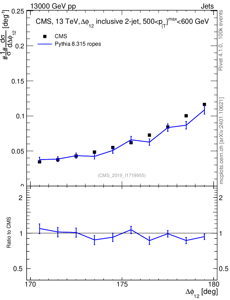 Lines: data, pythia8 8.315 ropes |