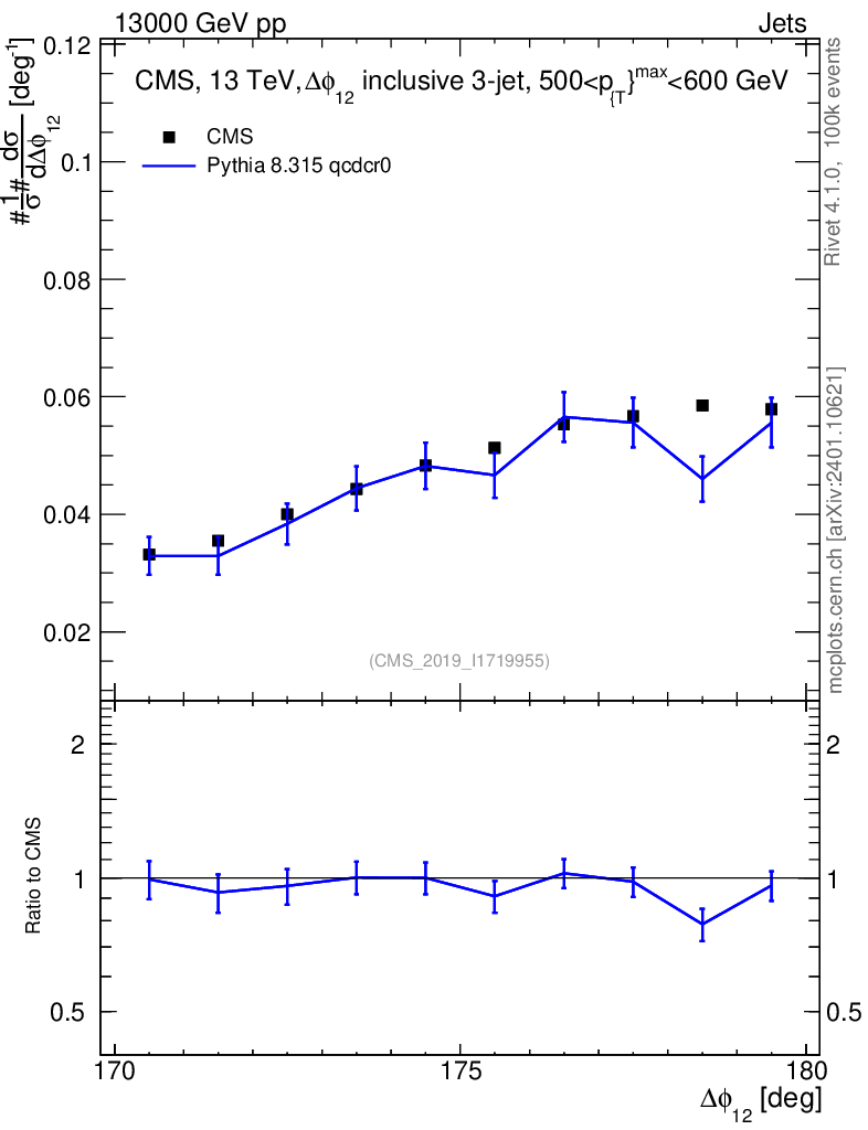 Lines: data, pythia8 8.315 qcdcr0 |