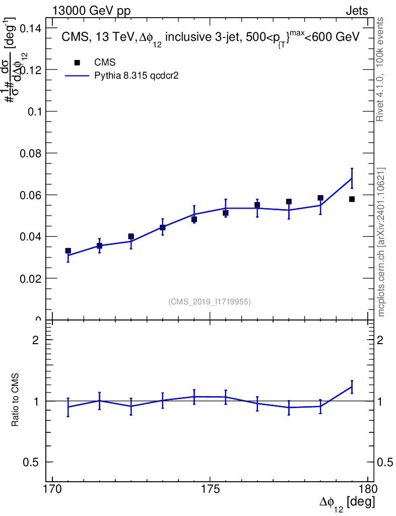 Lines: data, pythia8 8.315 qcdcr2 |