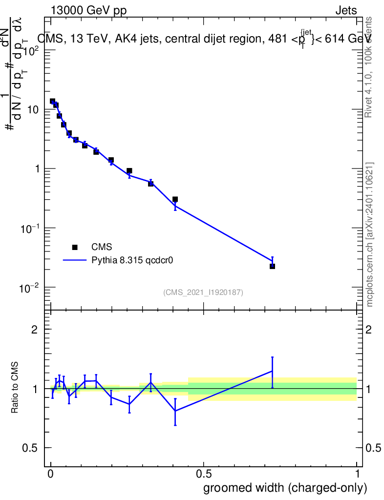 Lines: data, pythia8 8.315 qcdcr0 |