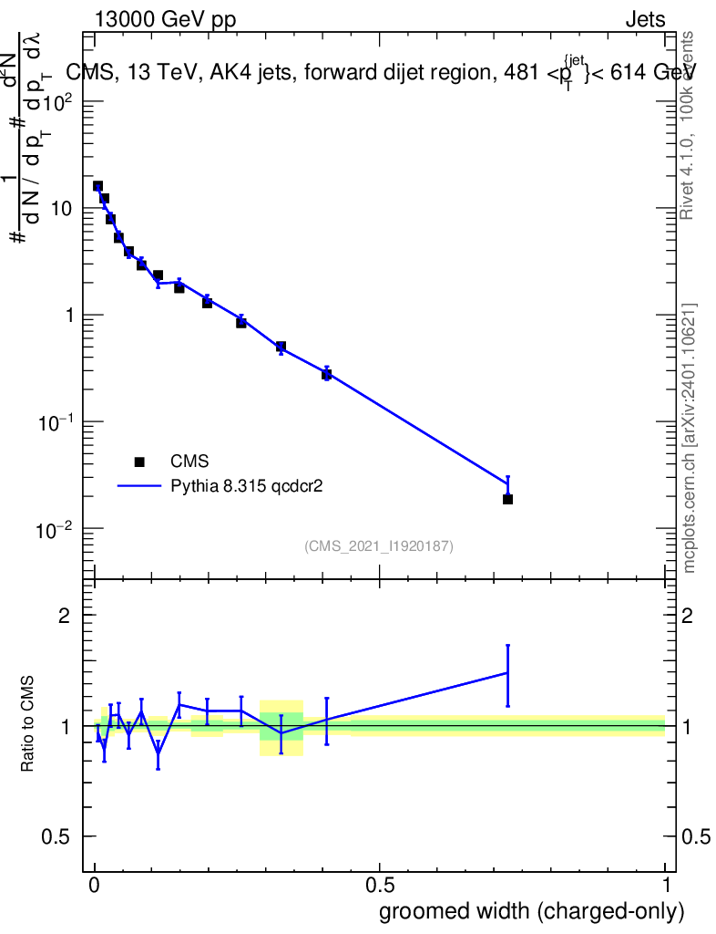Lines: data, pythia8 8.315 qcdcr2 |