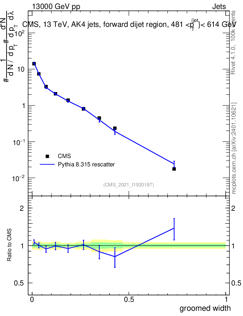Lines: data, pythia8 8.315 rescatter |