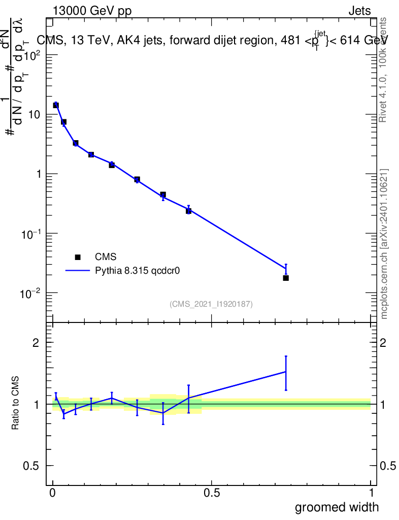 Lines: data, pythia8 8.315 qcdcr0 |