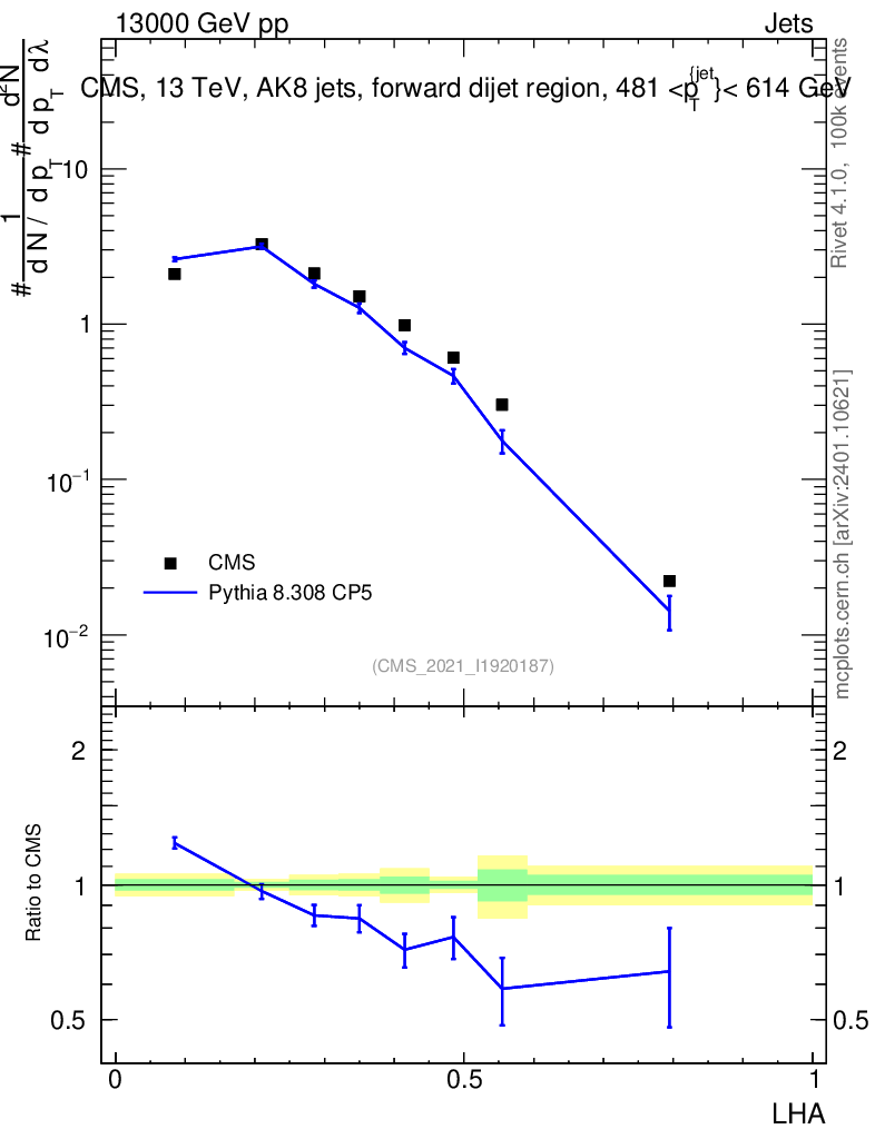 Lines: data, pythia8 8.308 CP5 |