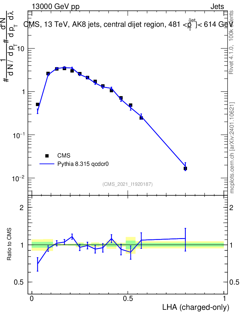 Lines: data, pythia8 8.315 qcdcr0 |