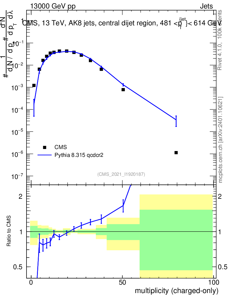 Lines: data, pythia8 8.315 qcdcr2 |