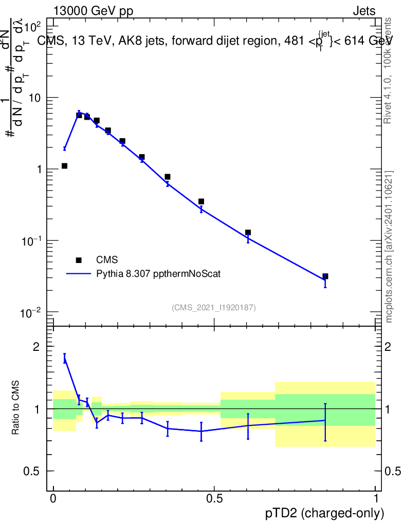 Lines: data, pythia8 8.307 ppthermNoScat |