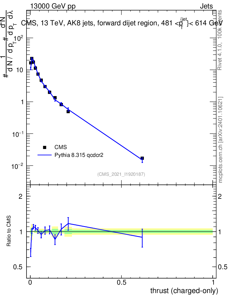 Lines: data, pythia8 8.315 qcdcr2 |