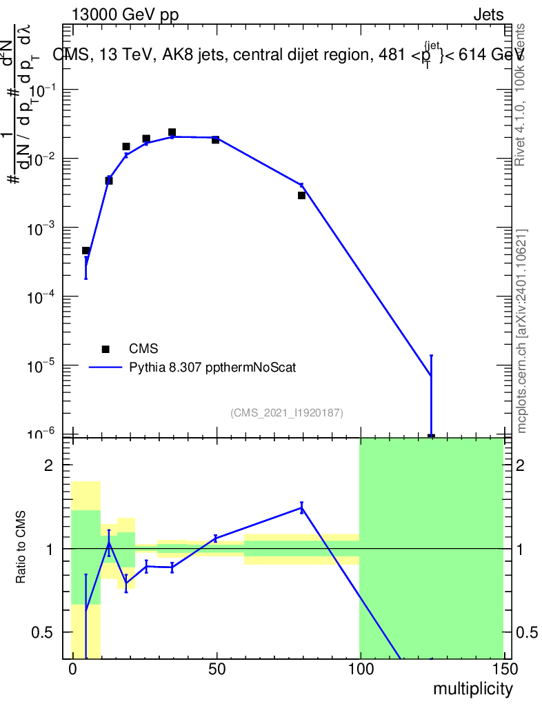 Lines: data, pythia8 8.307 ppthermNoScat |