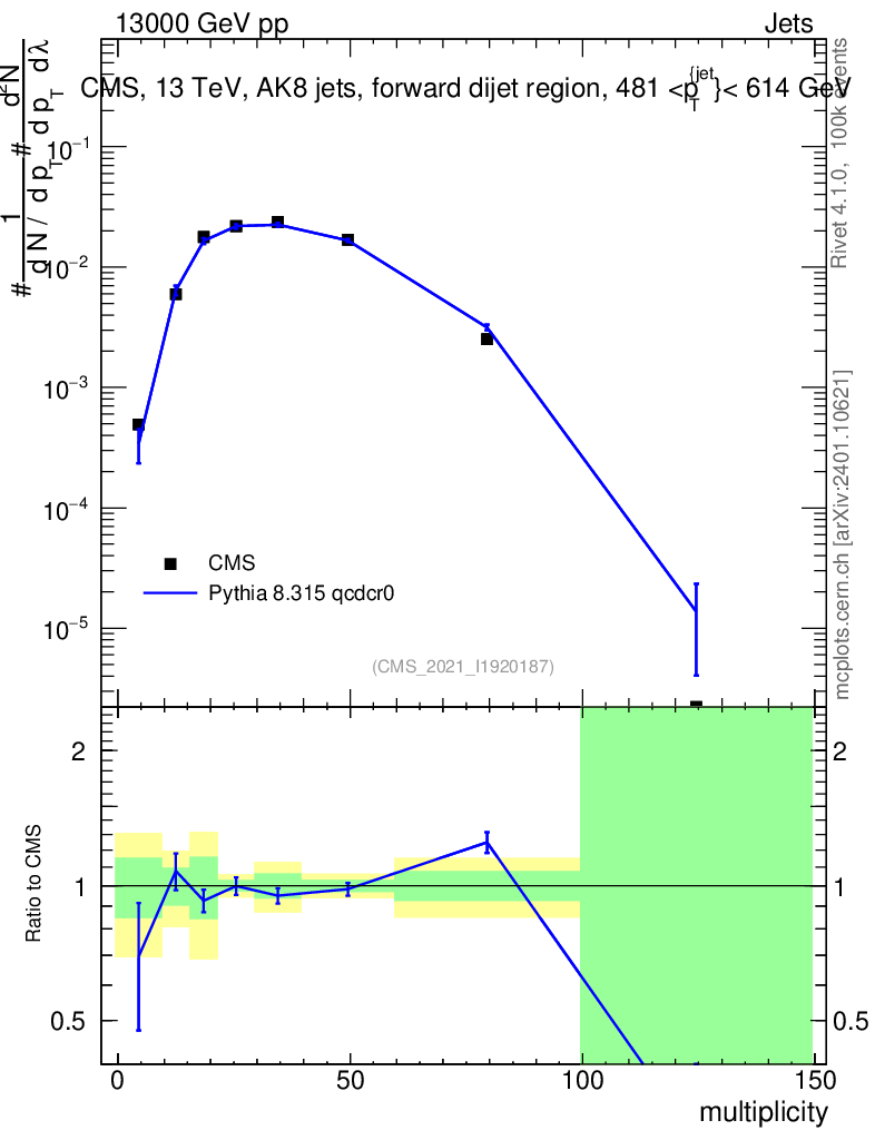 Lines: data, pythia8 8.315 qcdcr0 |