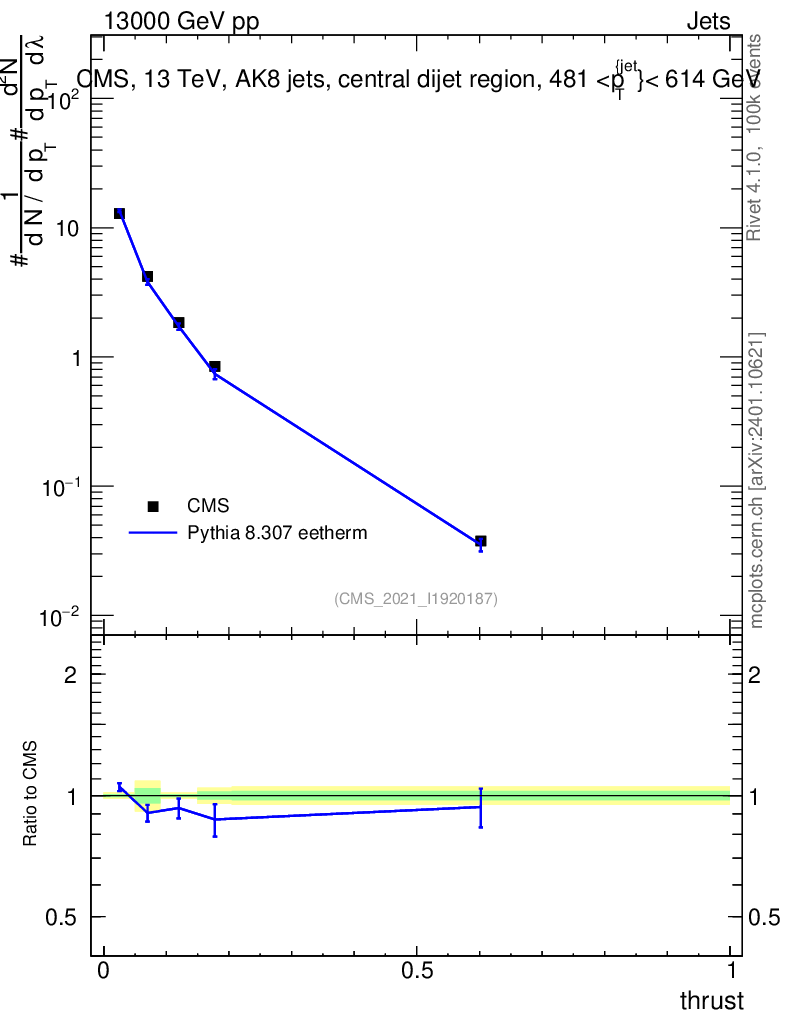 Lines: data, pythia8 8.307 eetherm |