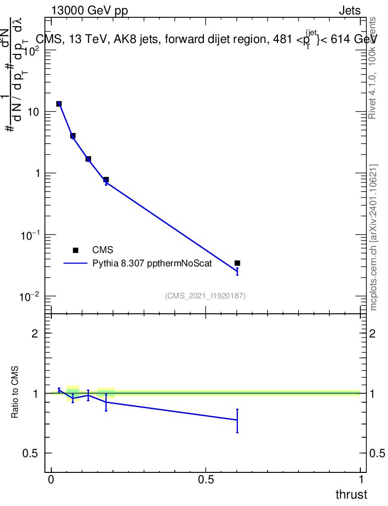 Lines: data, pythia8 8.307 ppthermNoScat |