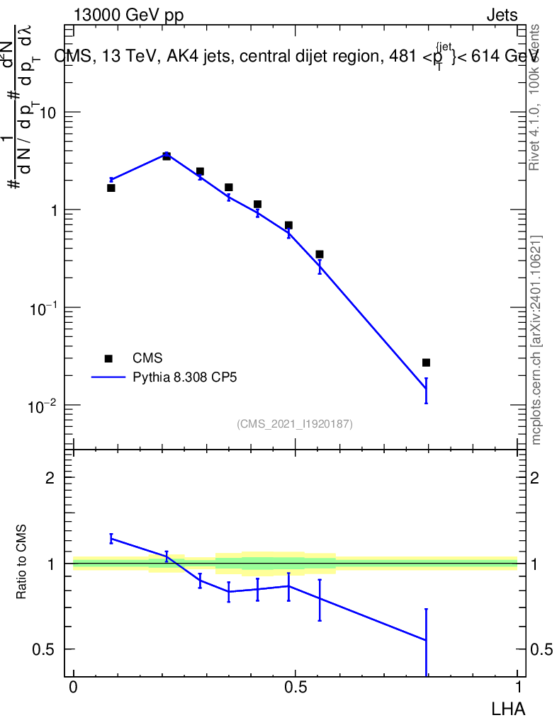 Lines: data, pythia8 8.308 CP5 |