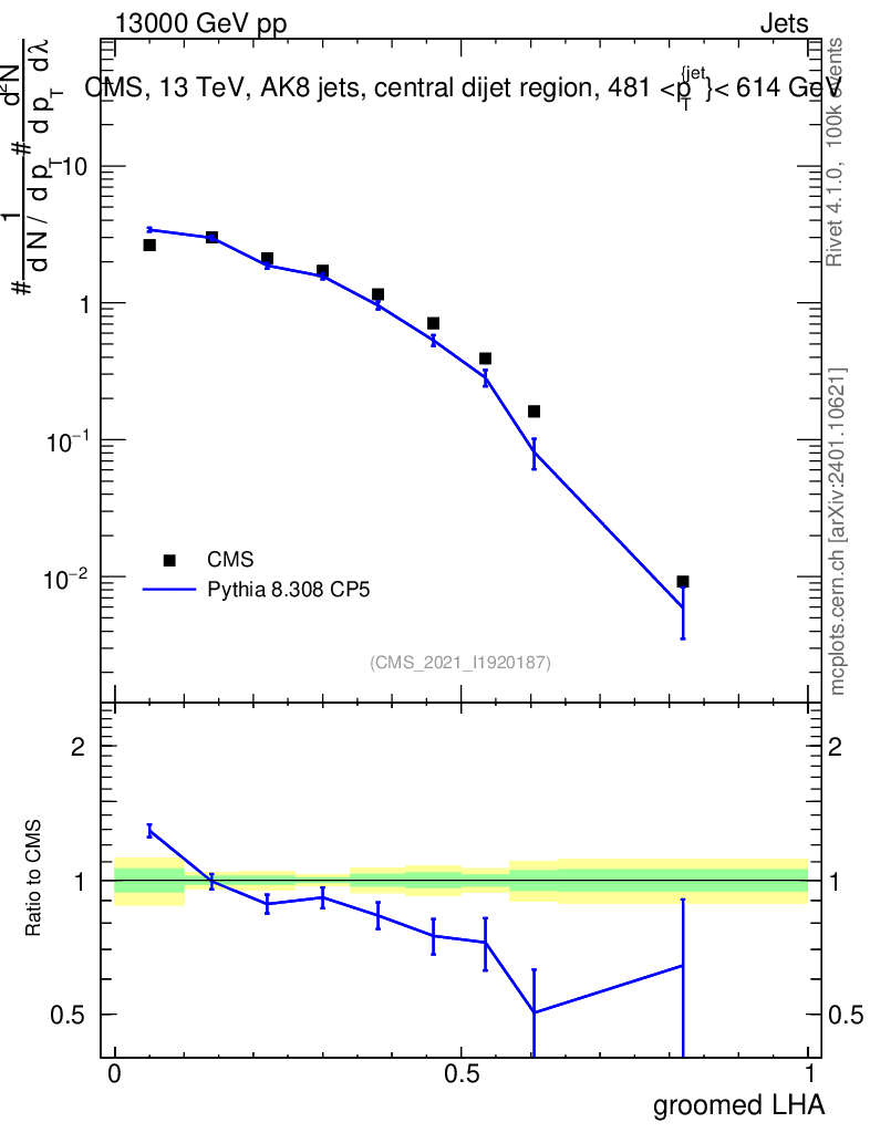 Lines: data, pythia8 8.308 CP5 |