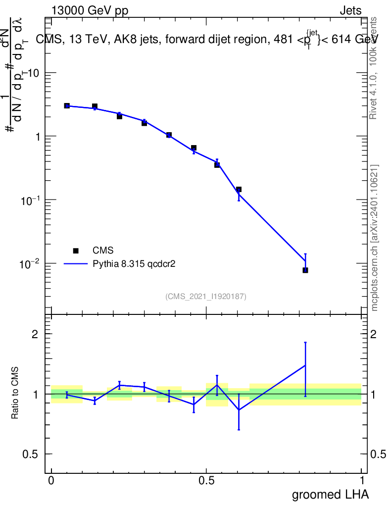Lines: data, pythia8 8.315 qcdcr2 |