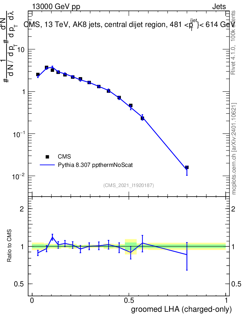 Lines: data, pythia8 8.307 ppthermNoScat |