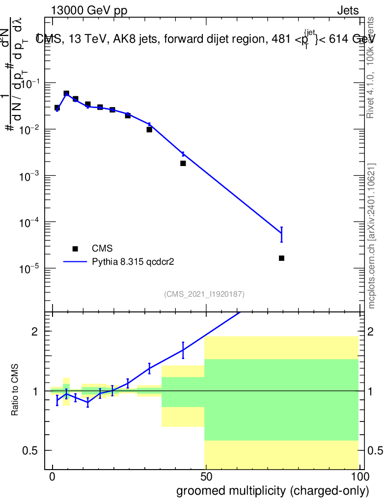 Lines: data, pythia8 8.315 qcdcr2 |