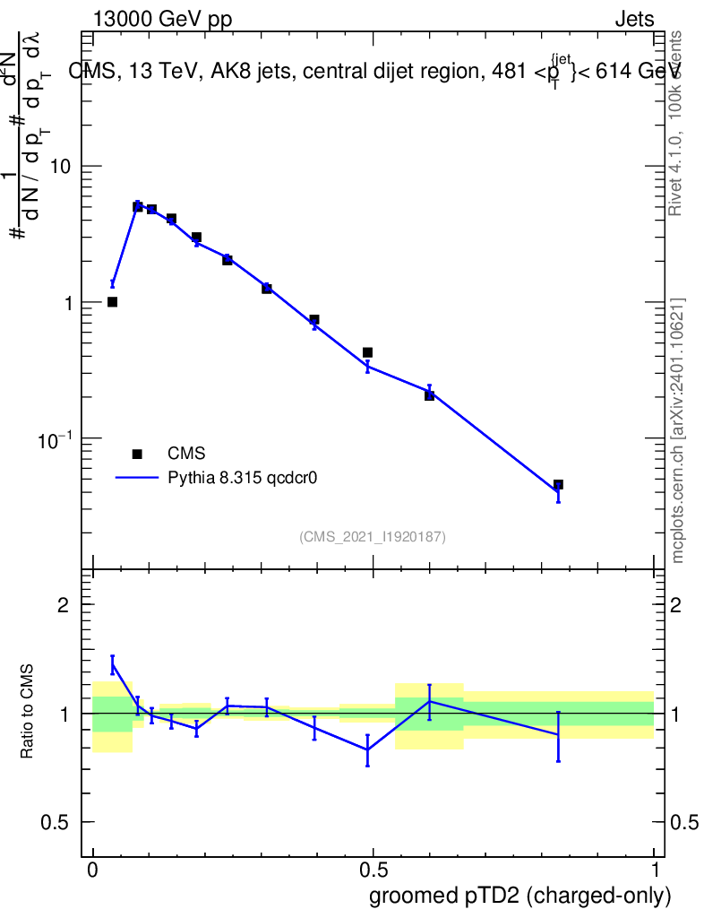 Lines: data, pythia8 8.315 qcdcr0 |