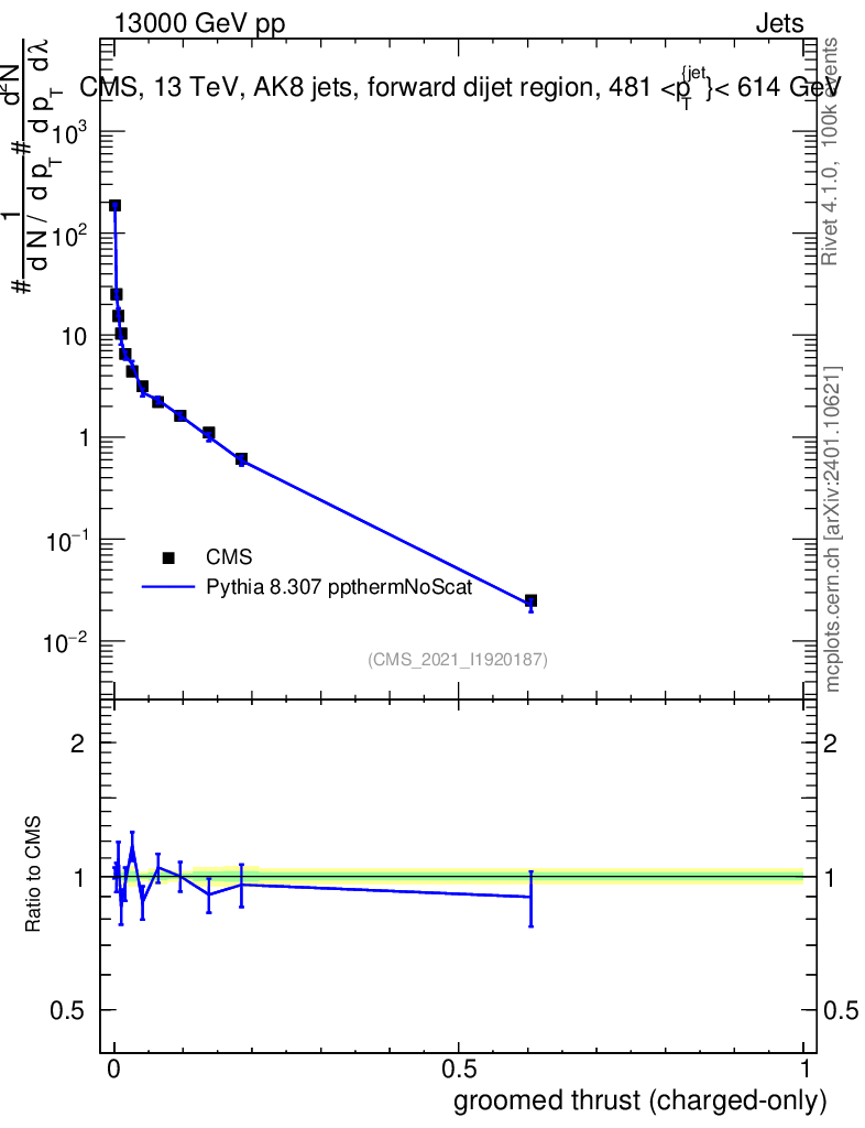 Lines: data, pythia8 8.307 ppthermNoScat |