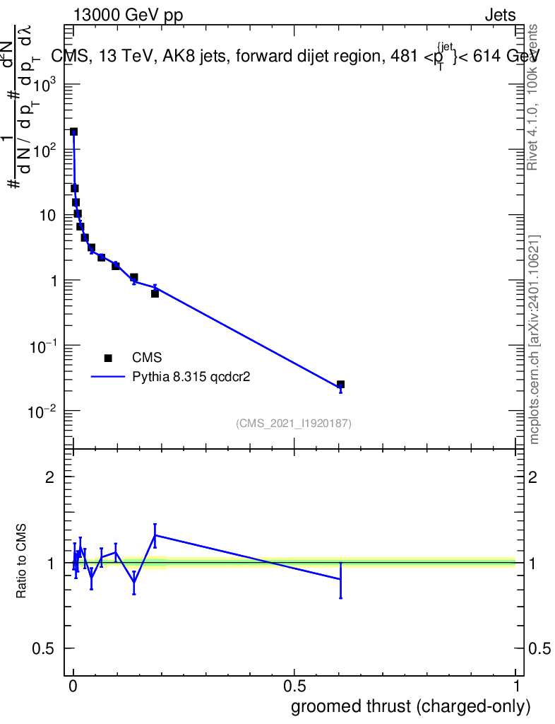Lines: data, pythia8 8.315 qcdcr2 |