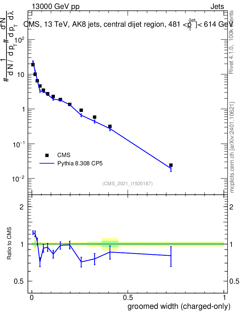 Lines: data, pythia8 8.308 CP5 |