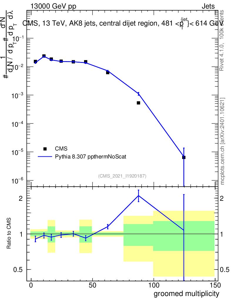Lines: data, pythia8 8.307 ppthermNoScat |