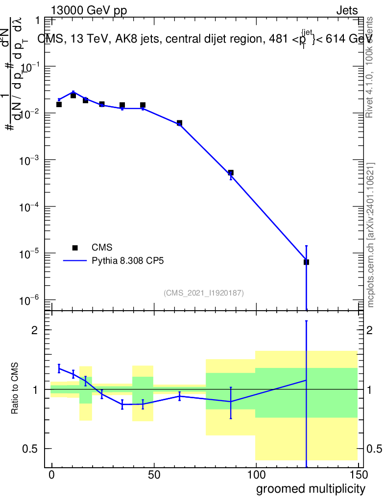 Lines: data, pythia8 8.308 CP5 |