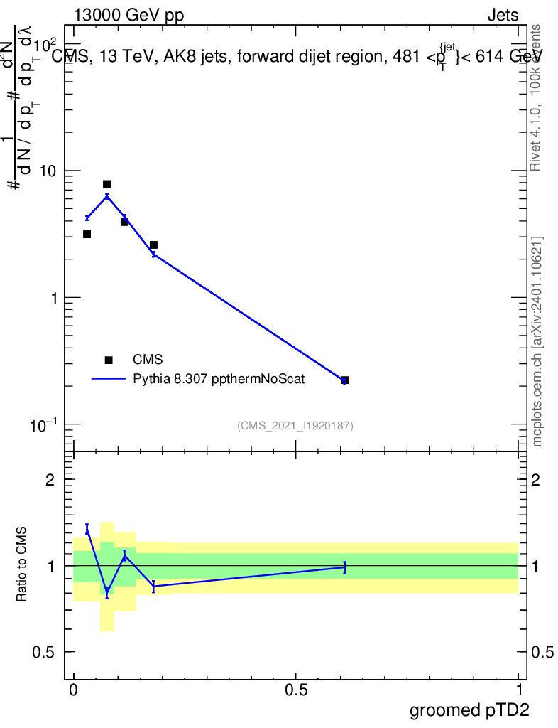 Lines: data, pythia8 8.307 ppthermNoScat |