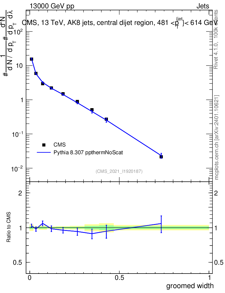 Lines: data, pythia8 8.307 ppthermNoScat |