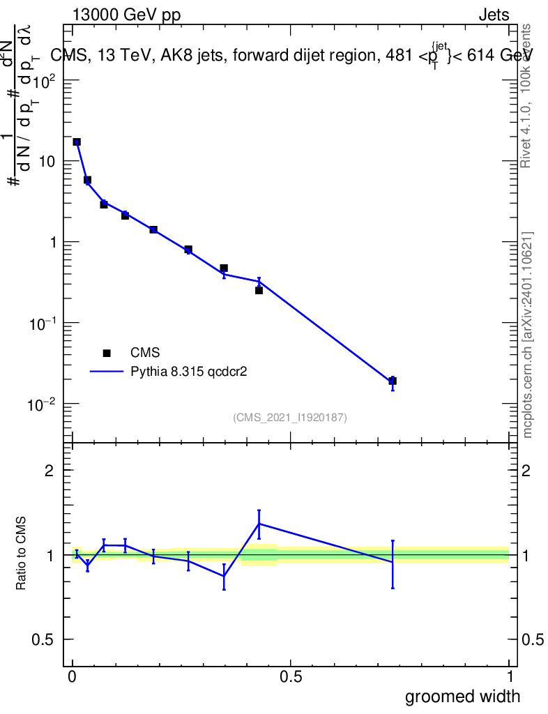 Lines: data, pythia8 8.315 qcdcr2 |