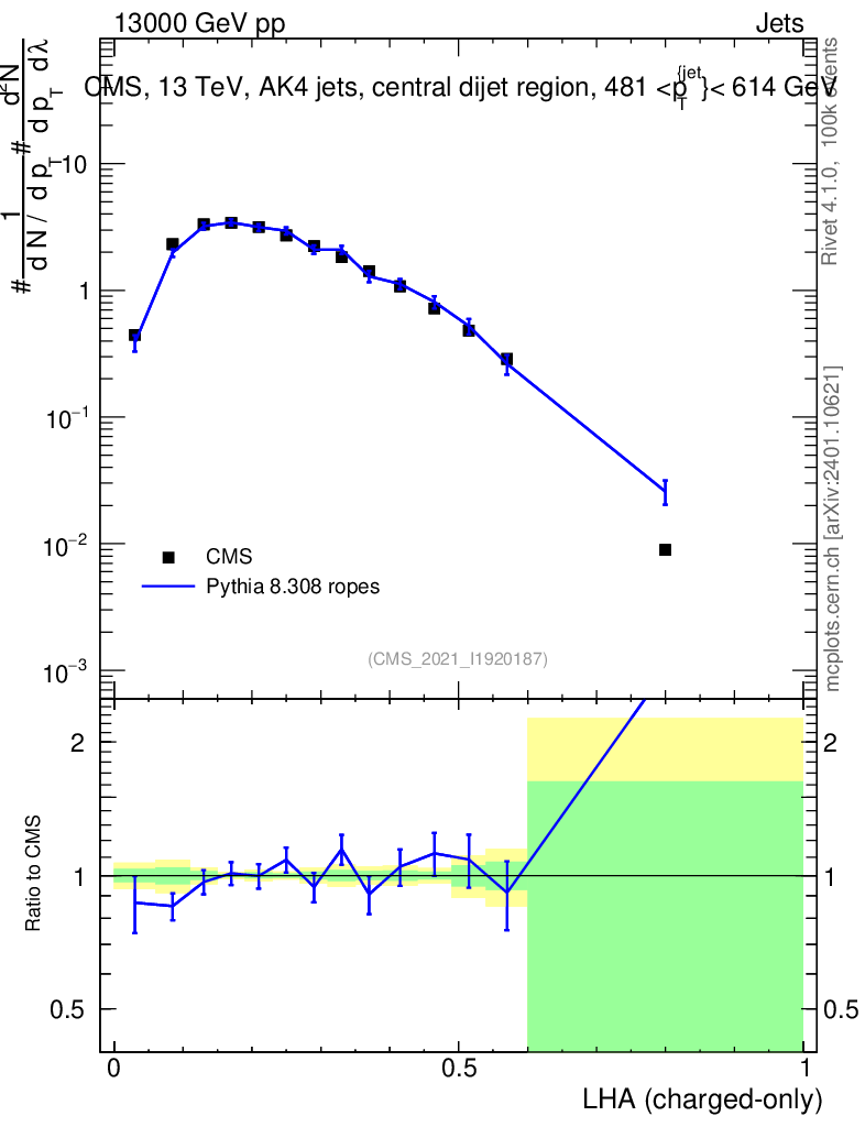 Lines: data, pythia8 8.308 ropes |
