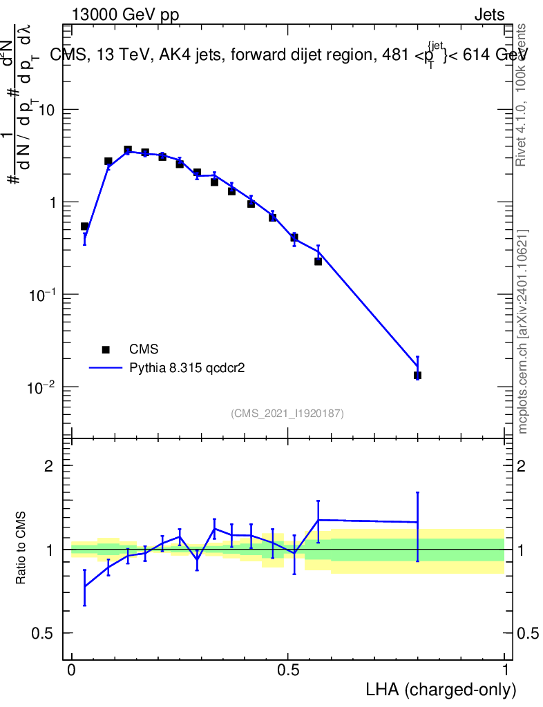 Lines: data, pythia8 8.315 qcdcr2 |