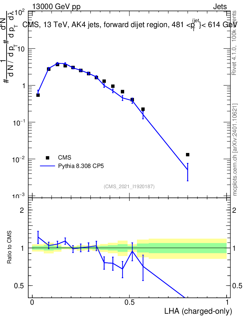 Lines: data, pythia8 8.308 CP5 |