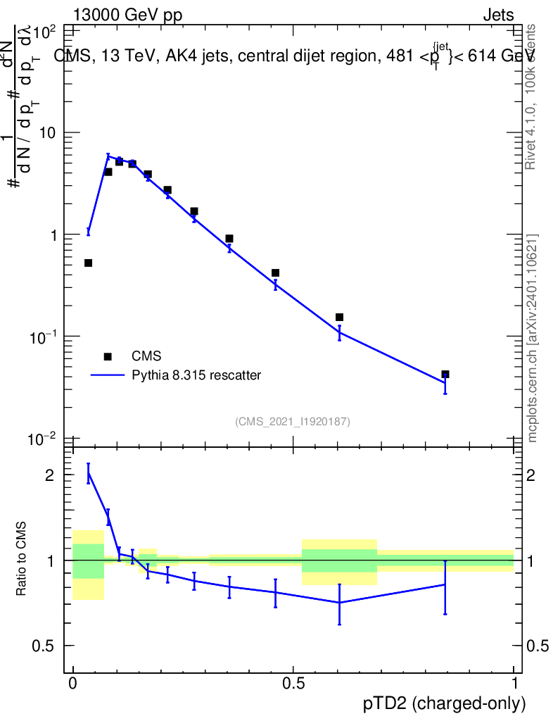 Lines: data, pythia8 8.315 rescatter |