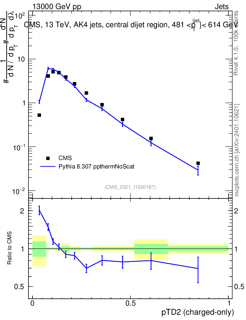 Lines: data, pythia8 8.307 ppthermNoScat |