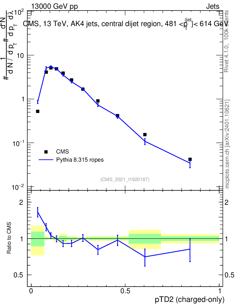 Lines: data, pythia8 8.315 ropes |