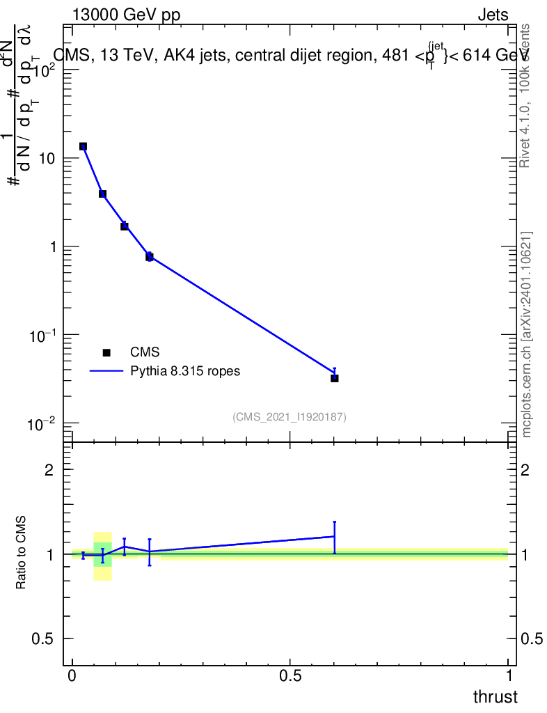 Lines: data, pythia8 8.315 ropes |