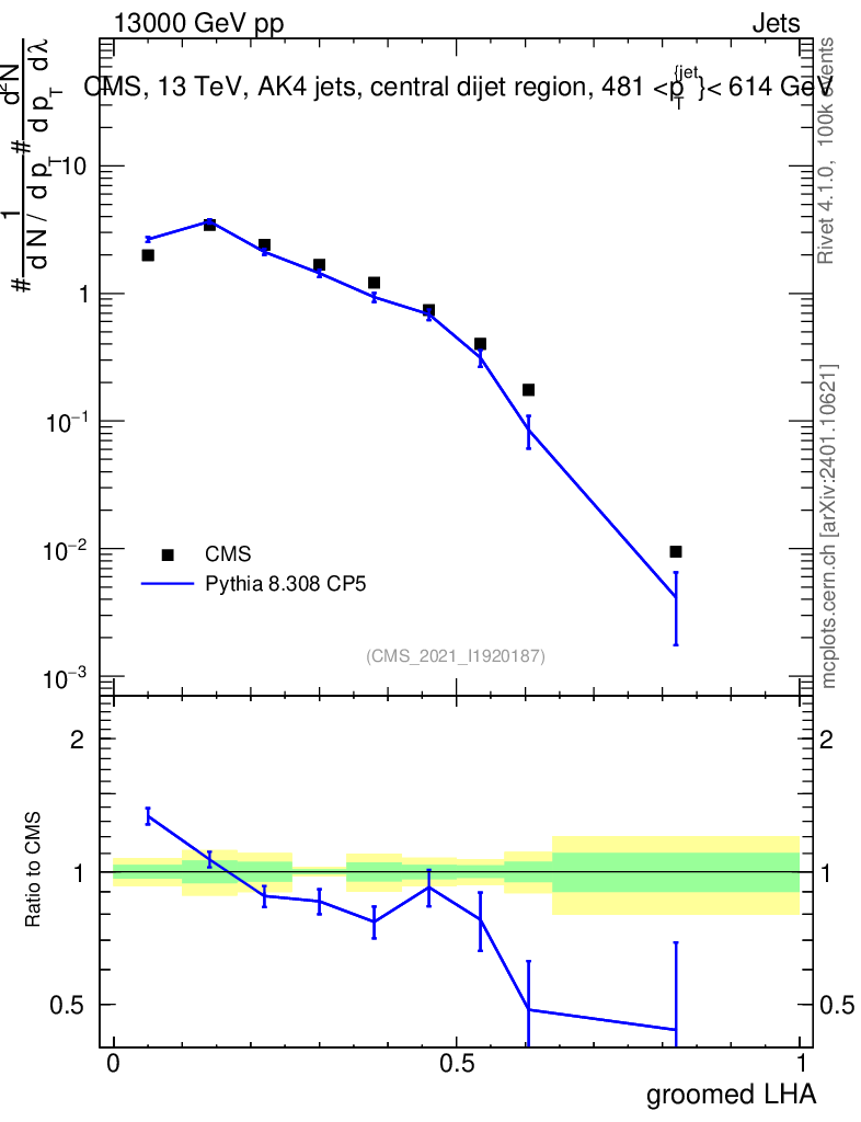 Lines: data, pythia8 8.308 CP5 |