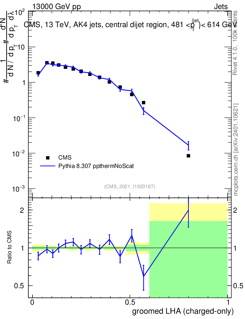 Lines: data, pythia8 8.307 ppthermNoScat |