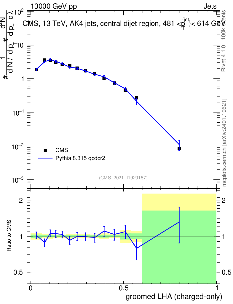 Lines: data, pythia8 8.315 qcdcr2 |