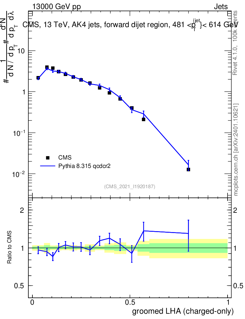 Lines: data, pythia8 8.315 qcdcr2 |